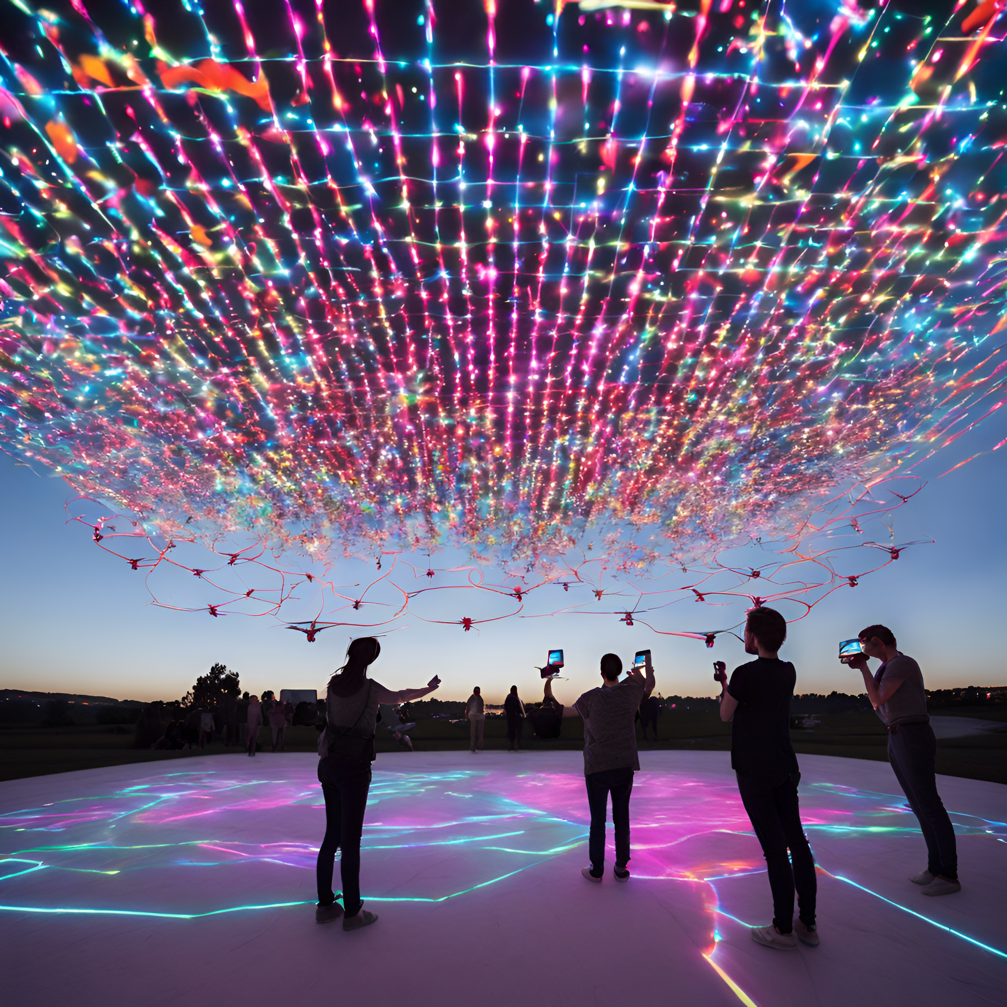 Fusing technology and art, craft interactive drone art installations that engage with audience input, turning the sky into a vibrant, ever-changing canvas.